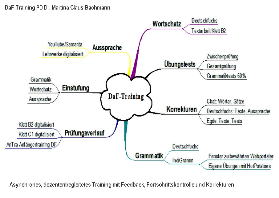Achtung: Dieser Kurs ist KEIN Ersatz für einen Präsenz-Kurs, sondern ein durchkonzipiertes eLearning-Arrangement! 1. Zielgruppe: Dieser Crash-Kurs B2 online richtet sich an Deutsch-Lernende, die die Stufe B1/DTZ erfolgreich absolviert haben und die telc B2-Prüfung machen wollen, die als Voraussetzung für viele Berufe und Ausbildungen gilt. Die Pruefungsvorbereitung umfasst 15 Wochen oder mehr mit Selbstlerneinheiten, die dozentenbegleitet sind, d.h., dass auftretende Fragen im WhatsApp-Chat oder per E-Mail zeitnah beantwortet werden. 2. Zu meiner Person: Ich bin pensionierte muttersprachliche Hochschuldozentin mit lebenslanger Unterrichtserfahrung im Fach Deutsch an öffentlichen Schulen, in der Lehrerausbildung und Erwachsenenbildung. Ich arbeite im Moment mit Hochschulen, der VHS und privaten Instituten zusammen und bin gleichzeitig lizenzierte Prüferin und Bewerterin für telc. Da ich mich auch seit den Zeiten des Atari mit eLearning beschäftigt habe, habe ich in den letzten Jahren ein spezielles Online-Konzept für individuelle Sprachstudien entwickelt und mit vielen Teilnehmenden getestet. Wenn alle Voraussetzungen vorliegen, liegt die Erfolgsquote fast bei 100%; 3. Voraussetzungen: "Selbstlernen oder autonomes Lernen ist die Fähigkeit, das eigene Lernen selbstständig zu gestalten und selbst die Verantwortung für den Lernprozess zu übernehmen. Das bedeutet zum Beispiel, Lernziele, -wege und inhalte eigenständig festlegen und den Lernerfolg selbst evaluieren zu können." (Quelle) Die Rolle der Lehrperson ist die eines Beobachters und unterstützenden Kommentators, eines Korrektors, Motivators und Bewerters im Hinblick auf sprachliches Handeln. Technische Voraussetzungen für den Online-Kurs: 1 PC/Laptop bzw. Handy (viele Teile können per Handy bearbeitet werden, aber nicht alle. Jede der 15 Lektionen besteht aus einem Pflichtteil und einem optionalen Plus-Teil, in dem zusätzliche Materialien und individuelle Übungen nach Kenntnisstand angeboten werden. Jede Lektion besteht aus drei Teilen, einem inhaltlichen Teil entsprechend der Prüfungsteile, einem Wortschatzteil und einem grammatikbezogenen Teil. Hinzu kommen Übungen aus einem LMS (Learning-Management-System), die Defizite aus vorhergehenden Stufen (A1-B1) ausgleichen können. Besonderer Wert wird auf die Entwicklung von Schreibfähigkeit gelegt, ein Prüfungsteil, der den meisten Teilnehmenden größere Schwierigkeiten bereitet. Alle Materialien können online/digital bearbeitet werden. Hördateien werden ebenso online zur Verfügung gestellt bzw. in Präsenz abgehört. Zum Basismaterial gehört neben dem Konto für ein LMS/Learning-Management-System auch ein Buch, das angeschafft werden kann (Link zu Amazon): Die Kommunikation läuft über eine Messenger-App. Für mündliche oder schriftliche Kontakte müssen Sie die höfliche Sie-Form beherrschen ("Hamburger Sie"). Um das zu üben, biete ich auch hier meine Texte mit dieser Form an. Die Du-Form sollte zusätzlich gelernt sein/werden.